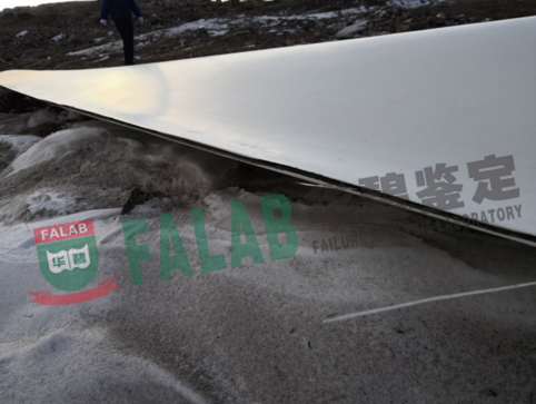 河北省某风电场的2片风机叶片损坏,影响了风机的正常运转。某保险股份有限公司连云港分公司为鉴定风机设备叶片的损失程度,特委托我单位对涉案风机叶片开裂原因进行鉴定。